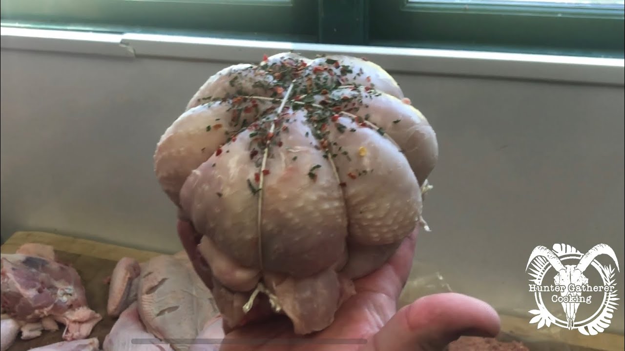 Stuff the turkey cushion end of step 2 up to 2 days ahead and store well covered in the fridge. Begin by slicing away the thigh joints. Put the chicken in the bag and tie it as you might a salami wrapping it crosswise so as to make the chicken elongate. Remove from all packaging and place the chicken on a baking tray on the silicon sheet provided.